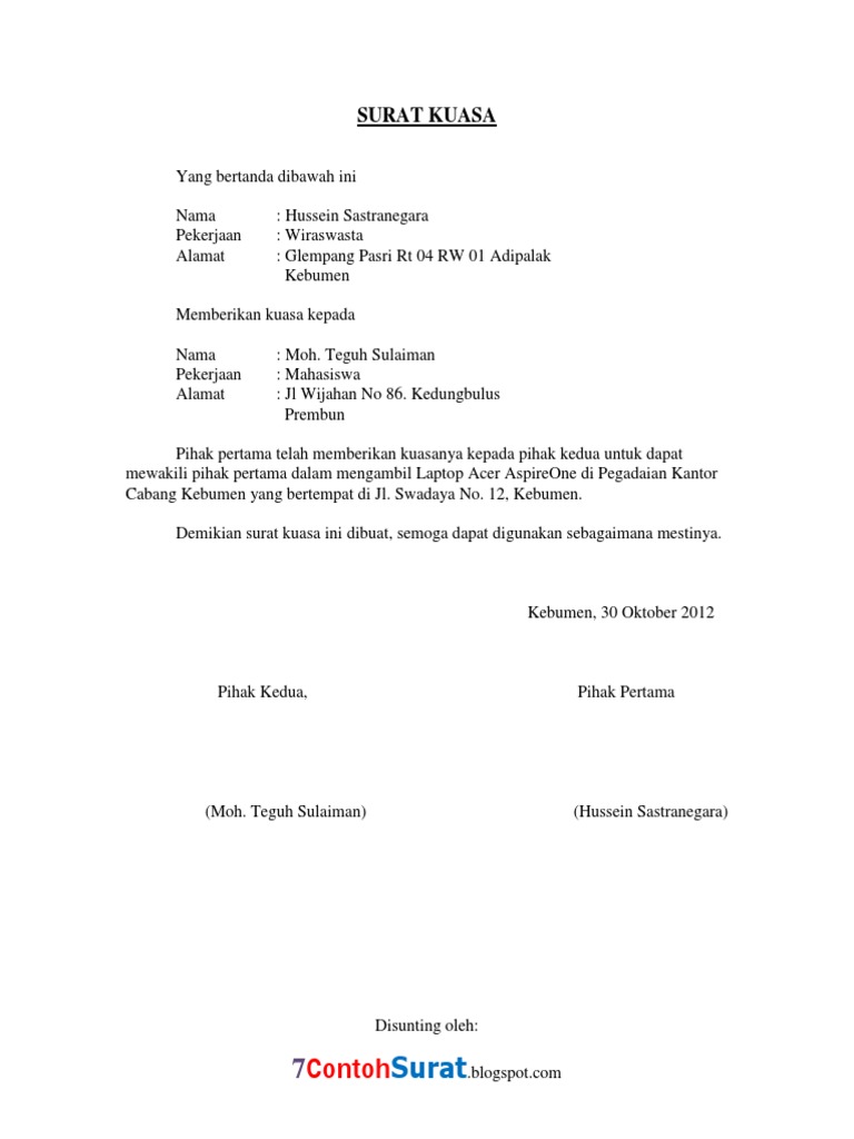 Contoh surat kuasa mengambil barang di pegadaian lampiran yang harus disertakan saat mengambil barang di pegadaian dengan surat kuasa adalah fotokopi ktp kedua pihak baik yang diberi kuasa maupun pemberi kuasa bukti kredit yaitu surat yang dikeluarkan oleh pihak pegadaian saat barang dimasukkan jika tidak ada maka barang yang digadaikan. Contoh SURAT KUASA PENGAMBILAN SERAH TERIMA BAHAN BAKU KAIN 2. Sukasenang nomor npwp.